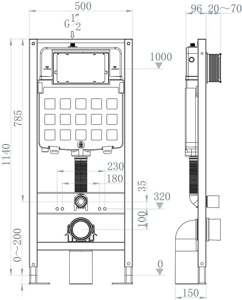Két nước âm tường Tiết kiệm diện tích, chống hoen gỉ. |