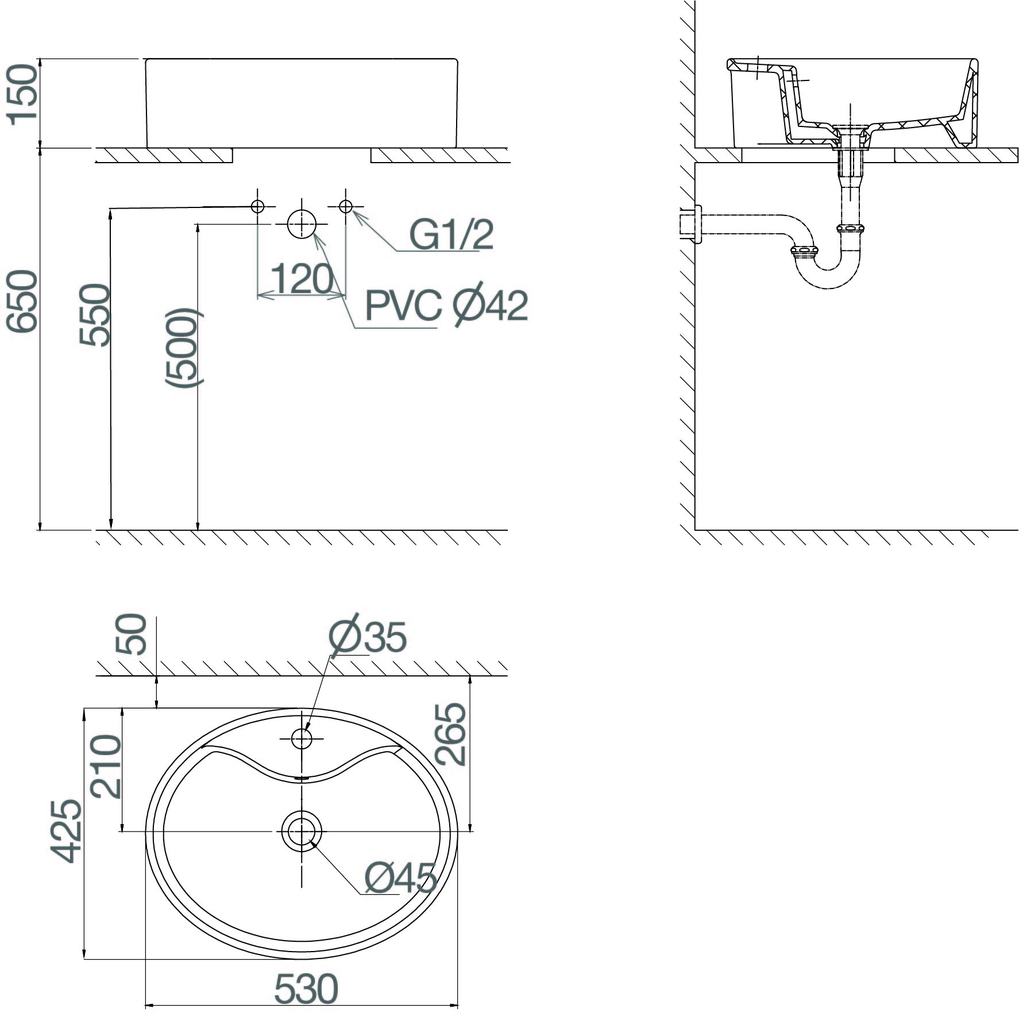 Kiểu lắp đặt: Dương bàn