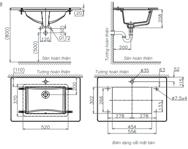 - Phù hợp lắp đặt với vòi ngắn một lỗ