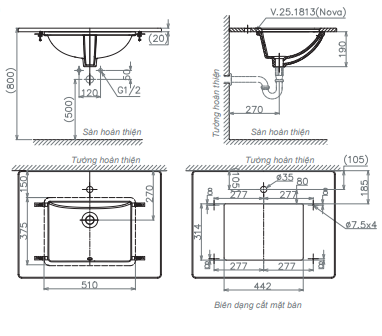 - Phù hợp lắp đặt với vòi ngắn một lỗ