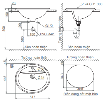 - Lỗ đặt vòi cũng được thiết kế trên chậu để thuận tiện hơn.
