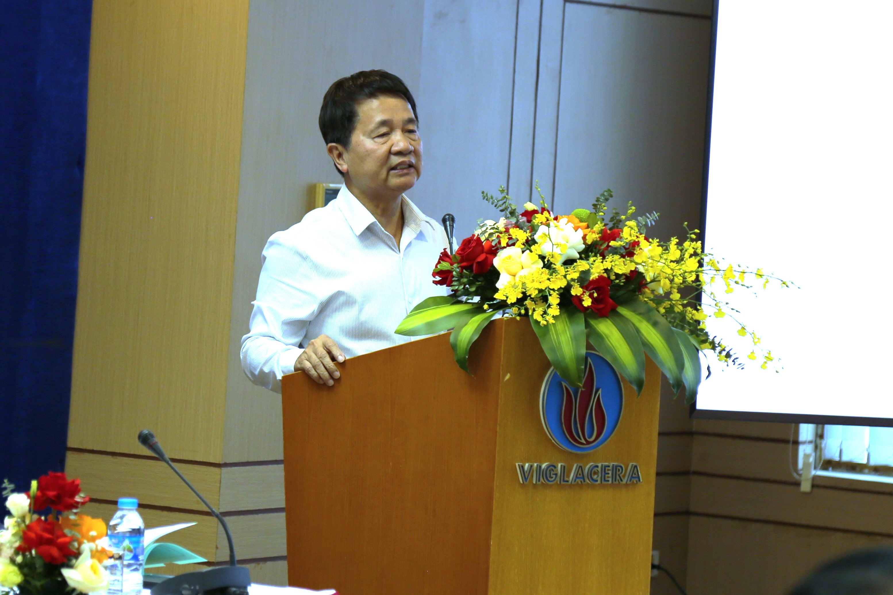 Ông Nguyễn Việt Cường - Quyền Tổng giám đốc công ty Cổ phần Thương mại Viglacera phát biểu tại hội nghị
