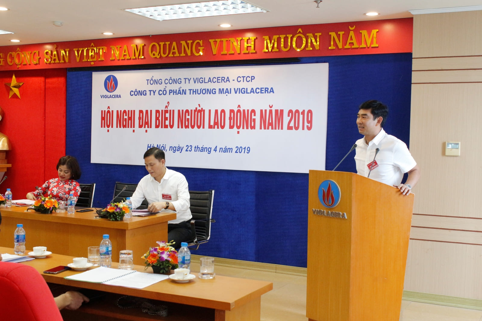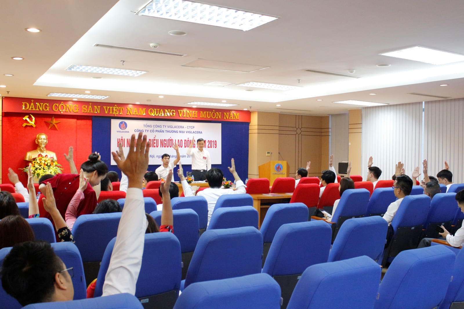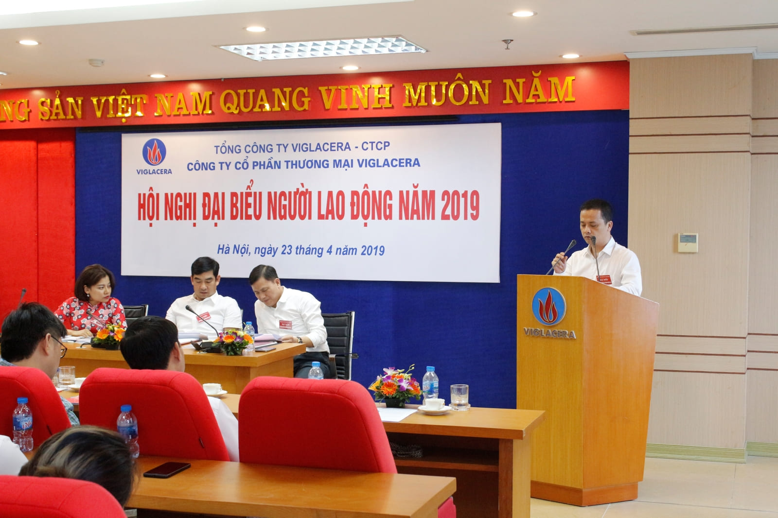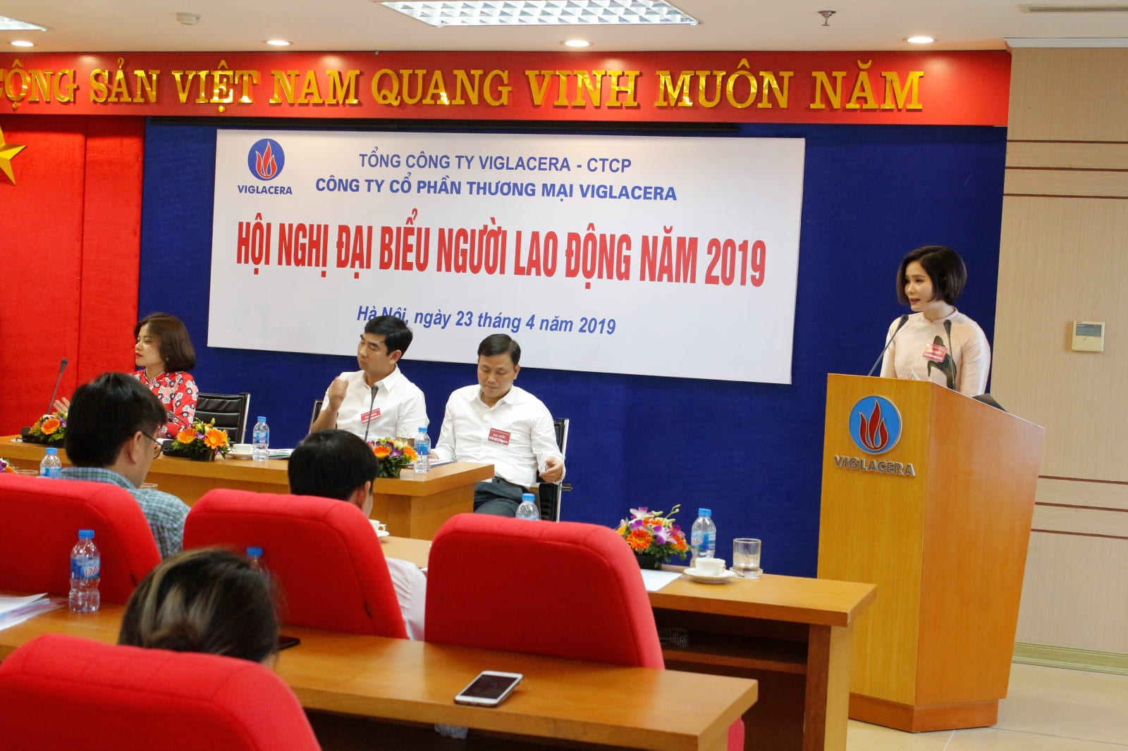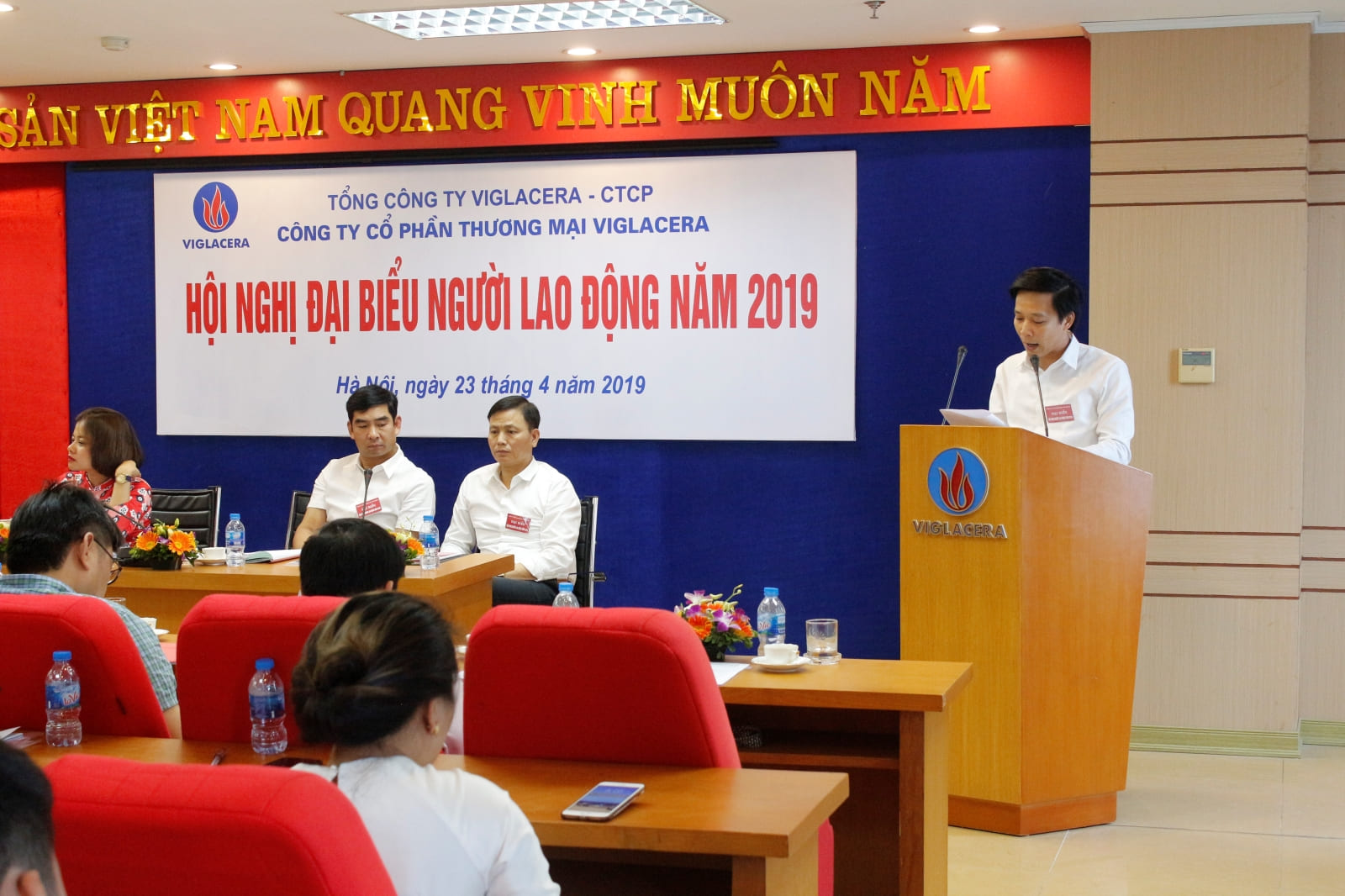 Ngay sau khi tổ chức thành công Đại hội cổ đông thường niên, để phổ biến kịp thời các kế hoạch, nhiệm vụ trong năm và tạo sự đồng thuận, quyết tâm của CBCNV, chiều ngày 23/04/2019, thực hiện chỉ đạo của Ban chấp hành Tổng công ty Viglacera-CTCP, Công ty CP Thương mại Viglacera đã tổ chức Hội nghị người lao động năm 2019 tại tầng 15 tòa nhà Viglacera.