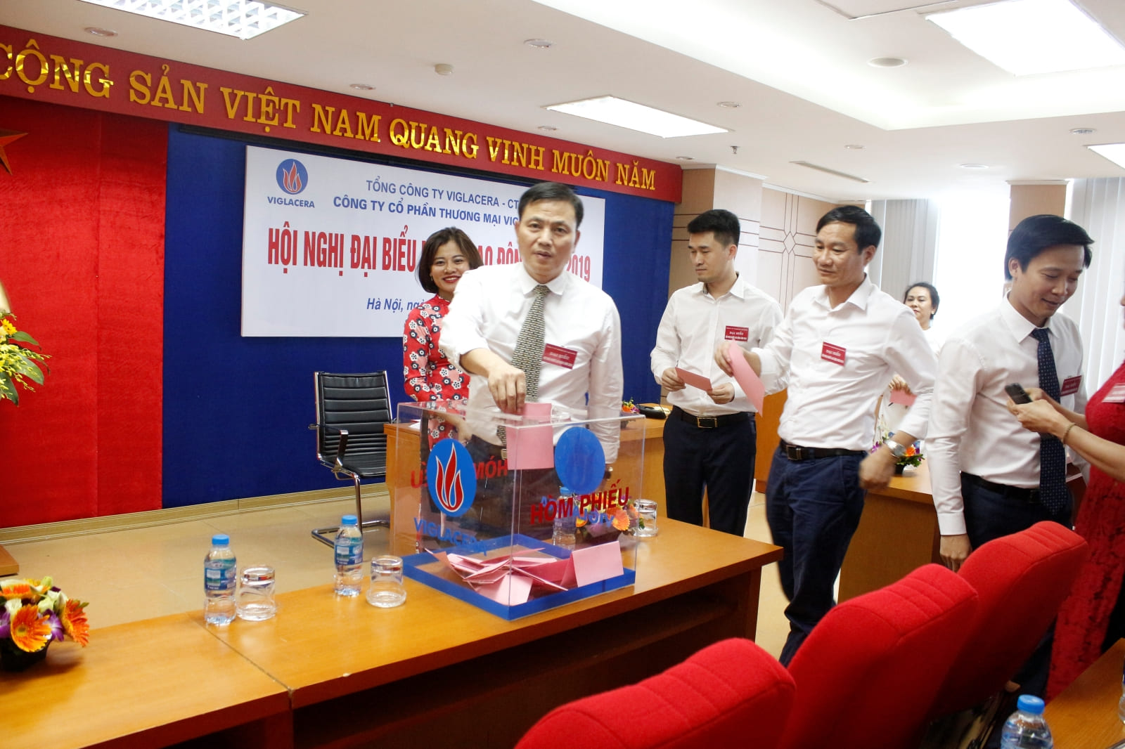 Sau hơn 2 tiếng làm việc nghiêm túc, Đại hội đồng cổ đông thường niên 2019 Công ty Cổ phần Thương mại Viglacera đã thành công tốt đẹp, đề ra các chỉ tiêu, giải pháp thực hiện một cách cụ thể, rõ ràng là cơ sở để Ban điều hành Công ty triển khai thực hiện.