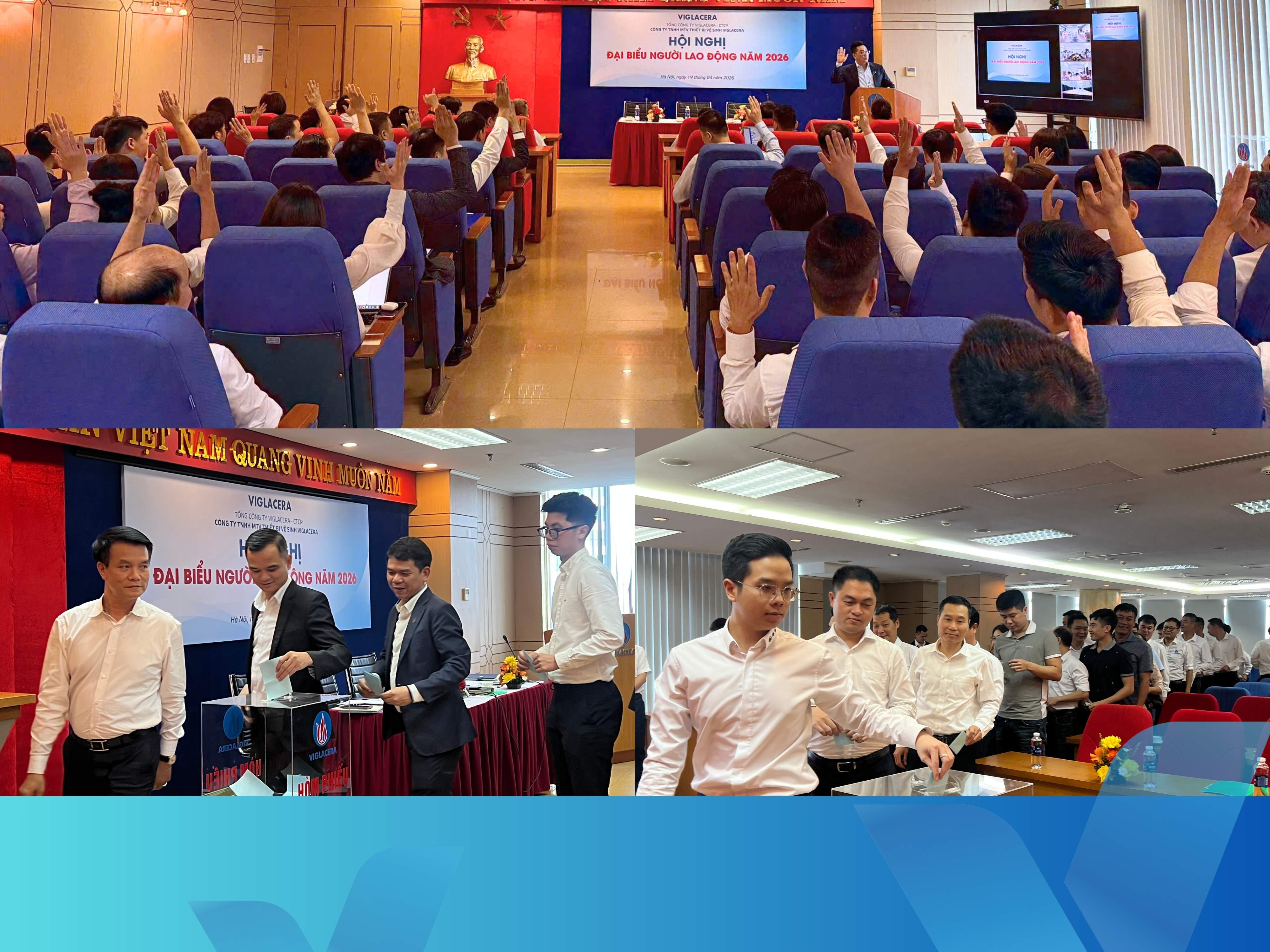 Hội nghị Đại biểu Người lao động năm 2026 đã diễn ra thành công tốt đẹp, thể hiện rõ tinh thần dân chủ, đoàn kết và quyết tâm của toàn thể cán bộ, công nhân viên Công ty TNHH MTV Thiết bị vệ sinh Viglacera. Đồng thời, khẳng định vai trò điều hành của Ban Lãnh đạo và sự đồng lòng của tập thể trong việc thực hiện hiệu quả kế hoạch sản xuất kinh doanh năm 2026.