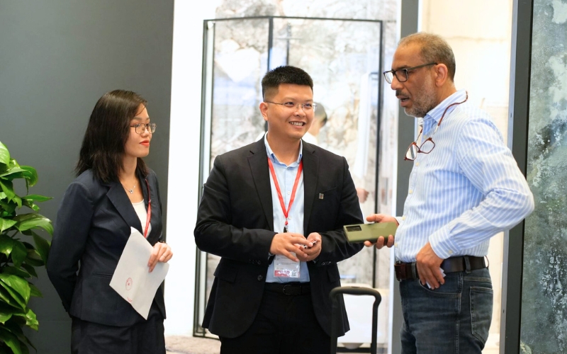 Tại KBC 2025, Viglacera không chỉ giới thiệu các sản phẩm chất lượng cao mà còn gây ấn tượng mạnh mẽ với khách tham quan quốc tế nhờ quy mô sản xuất lớn, sở hữu nhiều nhà máy hiện đại có khả năng sản xuất đa dạng các loại vật liệu, với hơn 50 năm kinh nghiệm trong lĩnh vực. Đặc biệt, với điểm nhấn là thương hiệu của Việt Nam, Viglacera cũng tạo được điểm cộng lớn trong mắt khách thăm quan, đặc biệt trong bối cảnh xu hướng chuyển dịch chuỗi cung ứng toàn cầu, khi Việt Nam đang trở thành điểm đến lý tưởng của các thương hiệu quốc tế. Gian hàng của Viglacera đã thu hút sự chú ý từ nhiều khách hàng và đối tác đến từ Mỹ, Châu Âu, Trung Đông, Trung Quốc và nhiều khu vực khác, mở ra cơ hội hợp tác kinh doanh đầy tiềm năng.