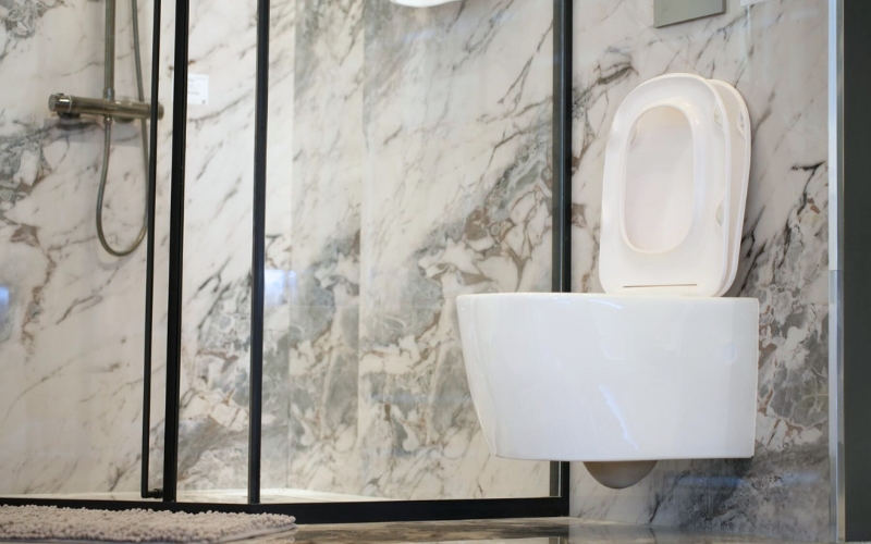 Hệ sinh thái VLXD xanh của Viglacera được tích hợp toàn diện trong không gian phòng tắm. Tấm tường bê tông khí ALC sử dụng vật liệu không nung, sở hữu khả năng chống thấm và cách âm vượt trội, kết hợp cùng hệ thống ống nước nóng lạnh chuẩn Châu Âu. Vách tắm kính cao cấp được chế tác từ phôi kính siêu trắng, ứng dụng công nghệ phủ Nano giúp tự làm sạch hiệu quả và thích ứng hoàn hảo với môi trường ẩm ướt. Kính tiết kiệm năng lượng cho vách ngoại thất có khả năng cản tia UV 99% và giảm thiểu chi phí điều hòa không khí.