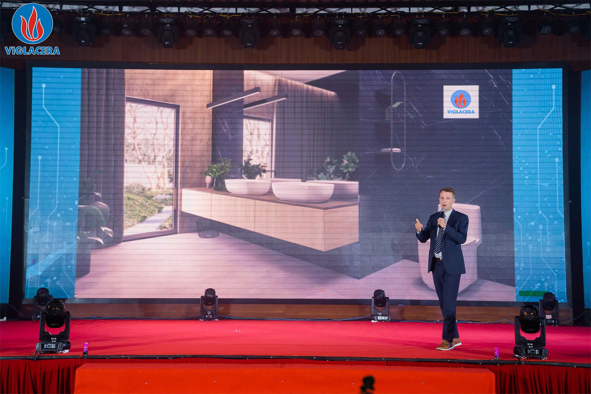 Ông Johannes Heikkila - Giám đốc phát triển thương hiệu & hợp tác quốc tế, phát biểu về xu hướng hội nhập của Viglacera và các thành tựu thông qua sự hợp tác quốc tế
