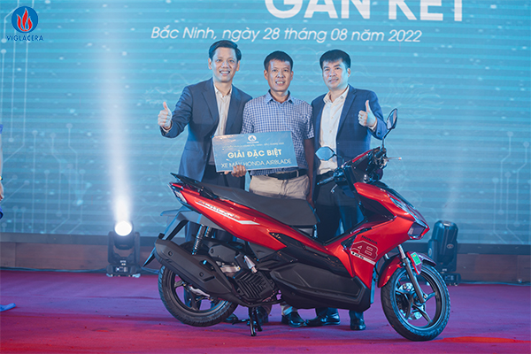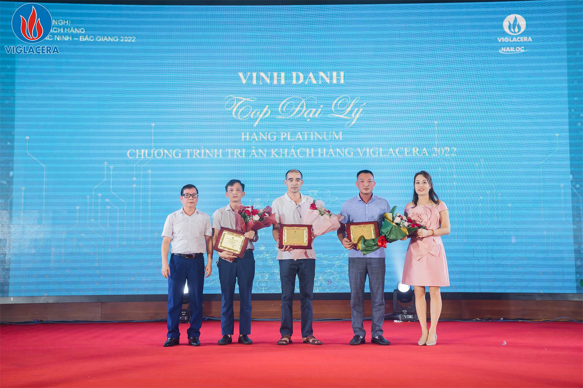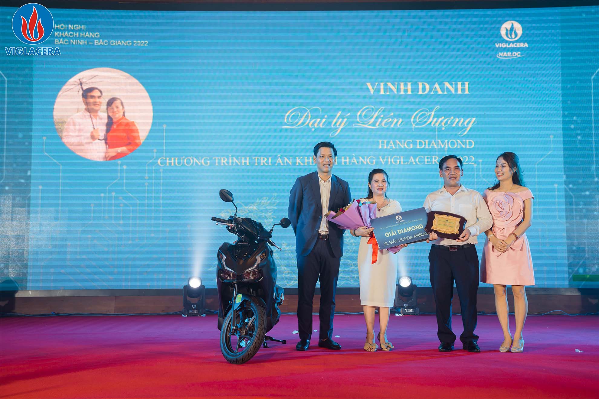 Như một lời tri ân đặc biệt đến các Đại lý, Cửa hàng thị trường Bắc Ninh - Bắc Giang, nhân sự kiện Hội nghị khách hàng Bắc Ninh 2022, Công ty CP Thương mại Viglacera đã vinh danh top các Cửa hàng, Đại lý thông qua kết quả kinh doanh trong chương trình Bán hàng mùa hè 2022, với 4.000 bộ sản phẩm đã được đông đảo các quý Cửa hàng, Đại lý ủng hộ. Trong đó, có 21 đại lý được tặng thưởng cấp độ Gold với 21 chỉ vàng SJC; 3 Đại lý nhận giải thưởng cấp Platinum, mỗi đại lý nhận được 2 chỉ vàng SJC; và cuối cùng là 1 chiếc xe máy Honda AirBlade dành cho Cửa hàng Đại lý đạt cấp độ Diamond.