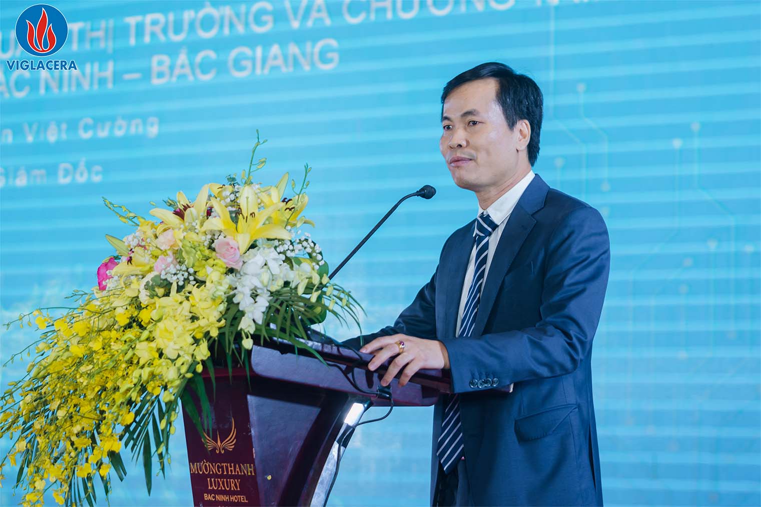 Ông Nguyễn Việt Cường - Phó tổng giám đốc Công ty CP Thương mại Viglacera, phát biểu về tổng quan thị trường kinh doanh sứ vệ sinh sen vòi cùng như chính sách kinh doanh năm 2022