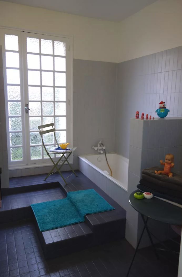 Đặc biệt, các bậc thang và sàn phía dưới được ốp những phiến gạch mỏng hình chữ nhật, trong khi đó trên tường lại được điểm xuyến bởi các ô gạch hình vuông, làm không gian như được nới rộng ra. Nhìn tổng thể, phòng tắm trông đơn giản pha chút cổ điển. Để đảm bảo chất lượng cho gia chủ, mỗi viên gạch lát đều được các chuyên gia chăm chút kỹ càng, kích thước phải chuẩn, màu phải sáng óng ánh và hài hoà với nội thất phòng tắm. Chính điều đó đã tạo nên nét duyên dáng, hiện đại cho căn phòng.