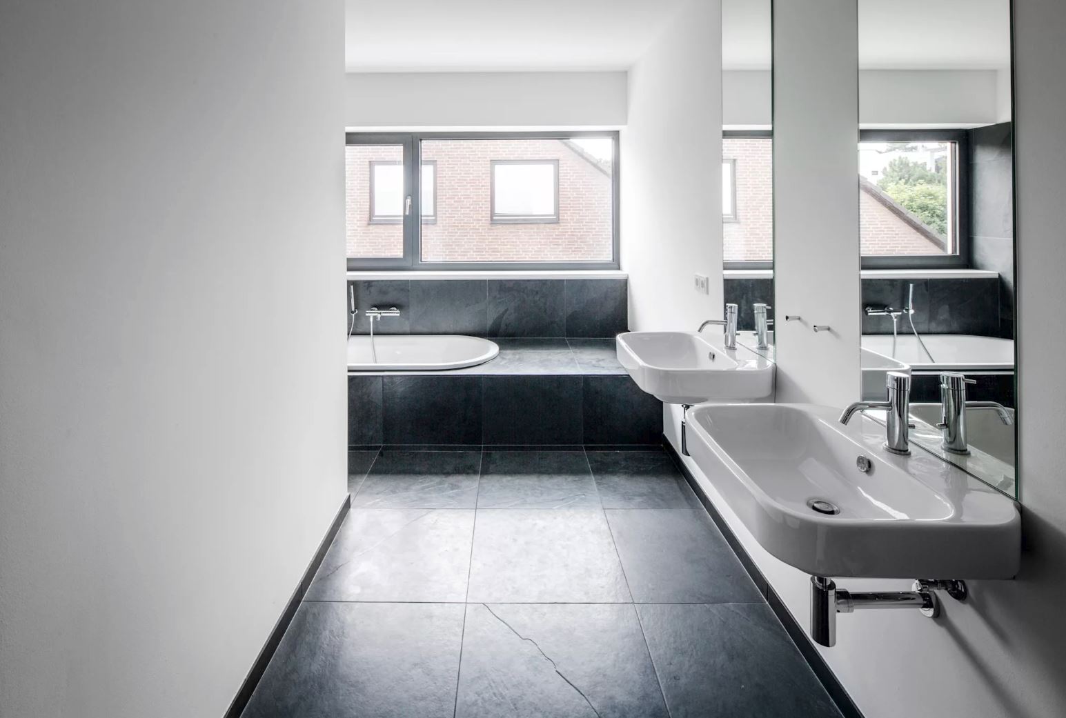 Loại gạch lát này tuy đơn giản, nhưng có độ bền cao và khả năng chống ẩm tốt đúng theo tiêu chí 10 Cách Tối Giản Thiết Kế Nhà Tạo Nên Sự Sang Trọng. Theo các chuyên gia, gạch cũng là một tấm chắn quan trọng để bảo vệ ngôi nhà, giảm thiếu tối đa nước đọng lại gây trơn trợt tại các khu vực dễ bị hắt nước như nhà tắm. Thêm vào đó, gạch càng đơn giản, tính kết hợp càng cao. Như mẫu thiết kết số 5 này, gạch lát hài hoà với tường và trần, tạo nét sang trọng và hiệu ứng tốt cho căn phòng. Đặc biệt hơn hết, với loại gạch này, mọi người sẽ tiết kiệm được chi phí đáng kể đấy!