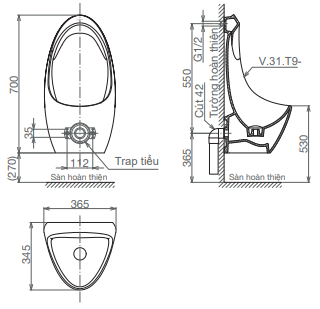 Tiểu nam treo tường T9 ( Cấp âm)