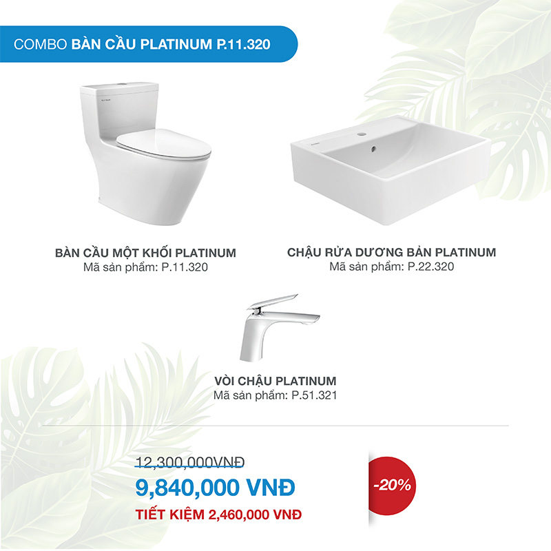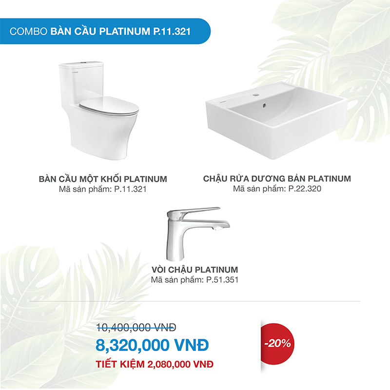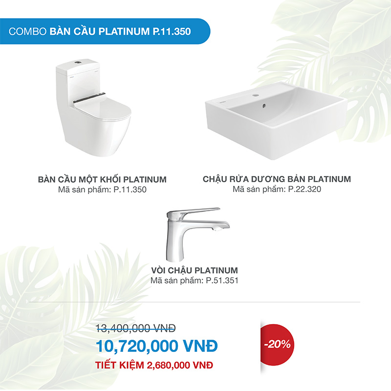 Chưa bao giờ mua sắm thiết bị vệ sinh cao cấp Viglacera Platinum lại dễ dàng đến thế với chương trình ƯU ĐÃI ĐẾN 30% trong mùa hè này. Hãy cùng điểm qua top 6 combo với ưu đãi hấp dẫn, trọn bộ tiện nghi cho phòng tắm của bạn.