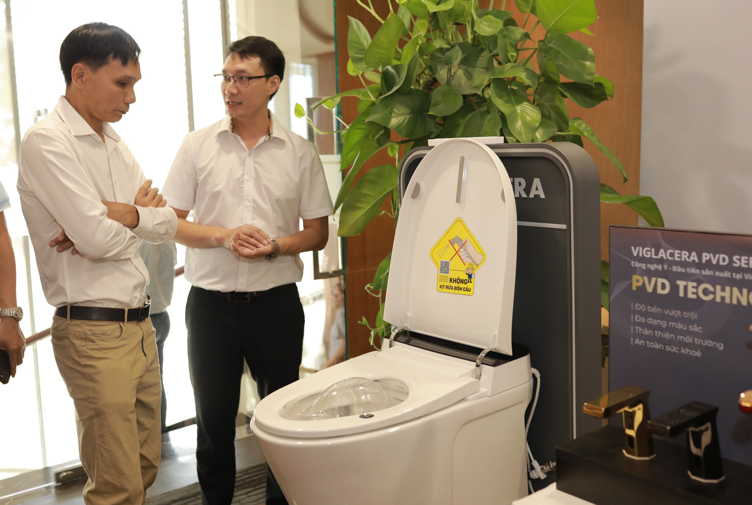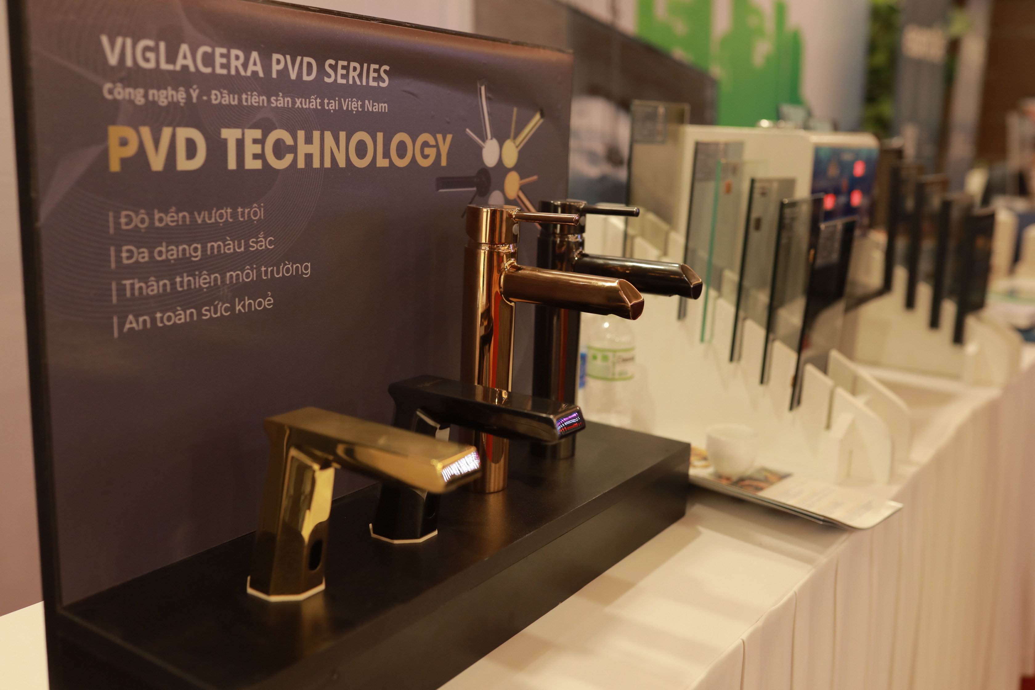 Trong khuôn khổ chương trình, Viglacera đã có dịp chia sẻ về dòng sản phẩm sen vòi phủ PVD (Physical Vapor Deposition - Lắng đọng hơi vật lý) - công nghệ bảo vệ bề mặt tiên tiến hàng đầu hiện nay.