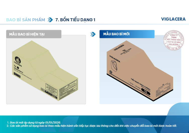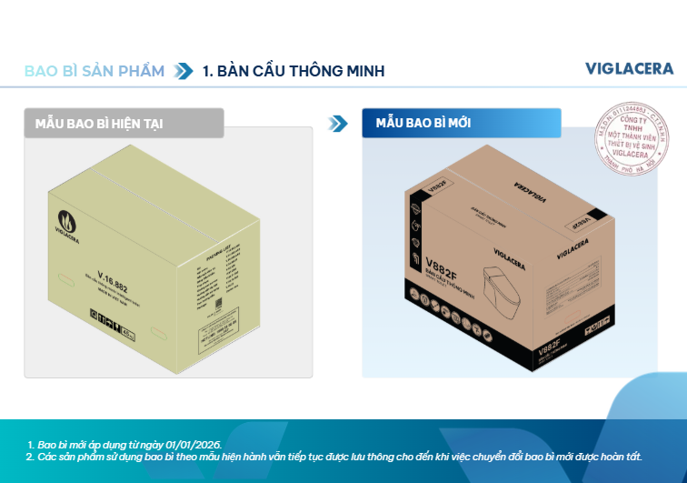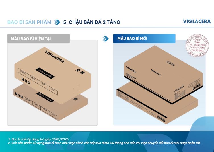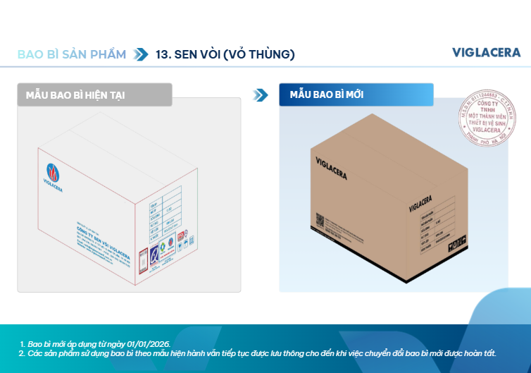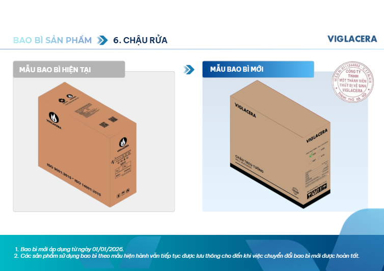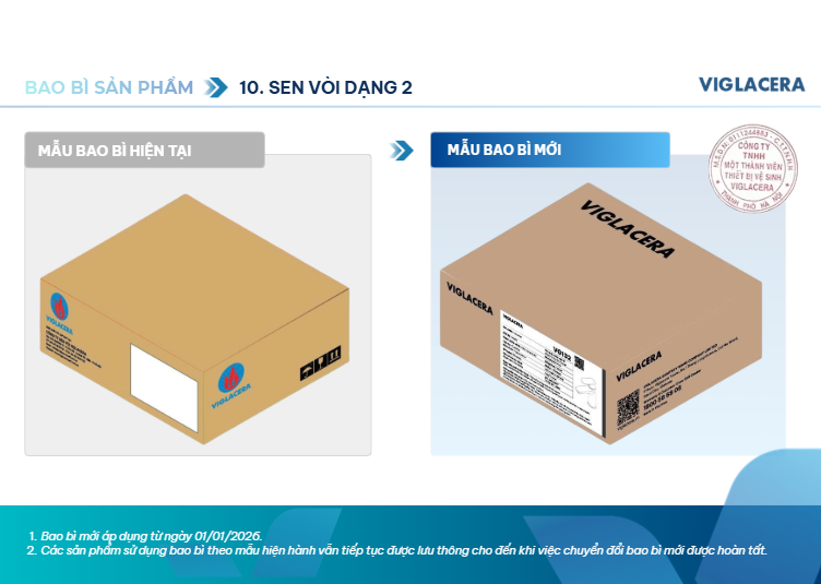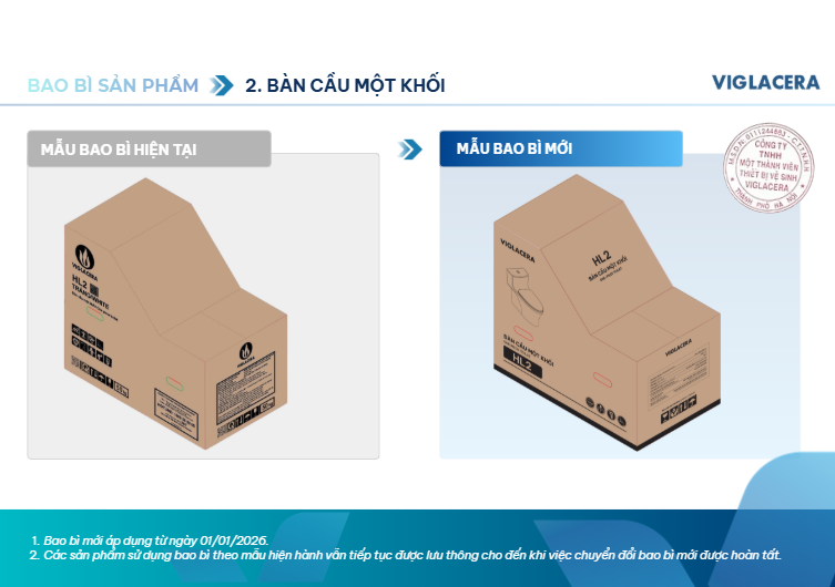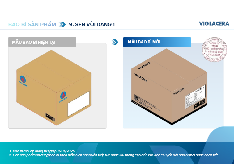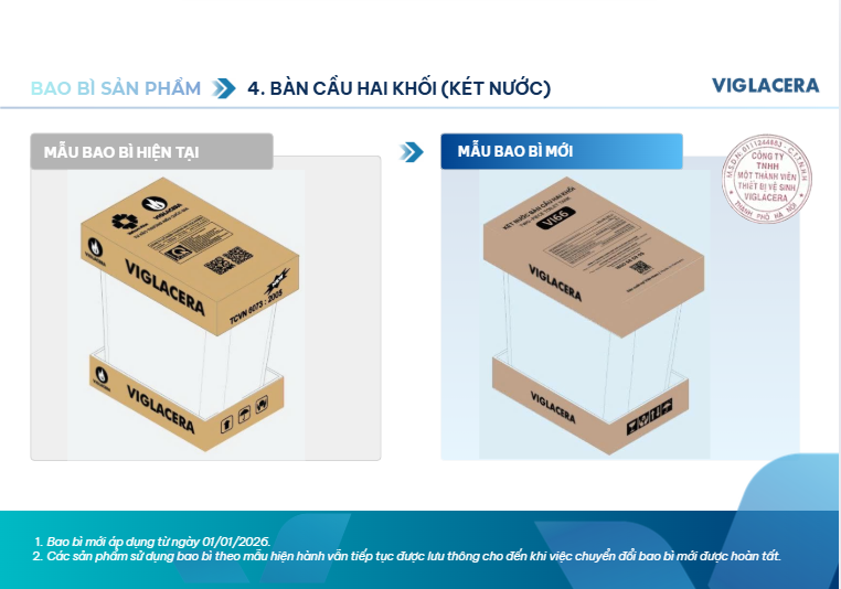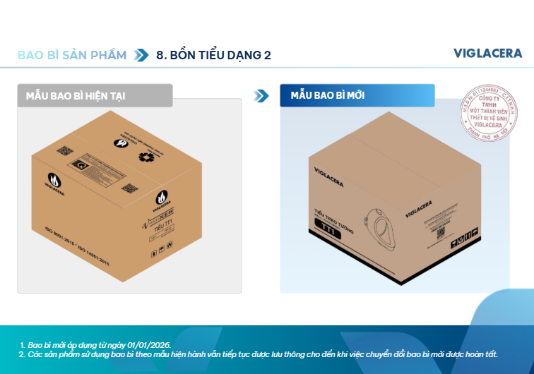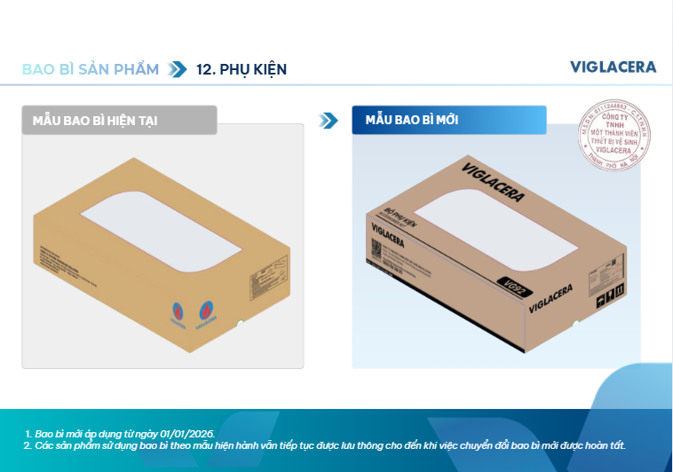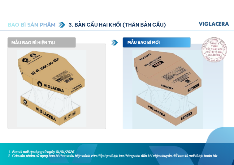 Viglacera thông báo thay đổi bao bì sản phẩm thiết bị vệ sinh từ 01/01/2026