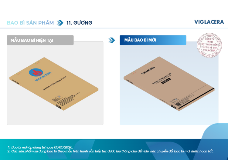 Kể từ ngày 01/01/2026, Viglacera sẽ chính thức áp dụng mẫu bao bì mới trên toàn hệ thống.