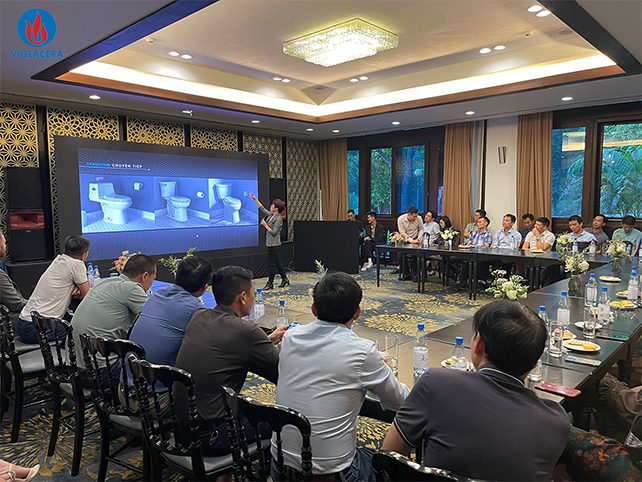 Ngay sau đó, anh Phạm Tiến Dũng, P. TGD công ty CP TM Viglacera, đồng giám đốc trung tâm Nghiên Cứu Phát Triển Sản Phẩm, cũng có đôi lời chia sẻ với các NPP về các công nghệ xả mới nhất được áp dụng trên các bàn cầu một khối mới của Viglacera, ra mắt từ Quý 4. 2022. Đây đều là các tiêu chuẩn khó được thực hiện nhằm đáp ứng yêu cầu khắt khe của cả thị trường xuất khẩu như Mỹ và EU.