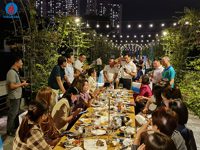 Trong buổi tối cùng ngày, các NPP cùng BLD và cán bộ công ty CPTM Viglacera đã tham gia buổi tiệc BBQ ngoài trời đầy ý nghĩa ngay trong khuôn viên của Trung Tâm Hội Nghị Quốc Gia. cùng nhau nâng những ly rượu vang ấm áp, hòa quyện cùng không gian thoáng đãng và tiết trời se lạnh của mùa thu Hà Nội.