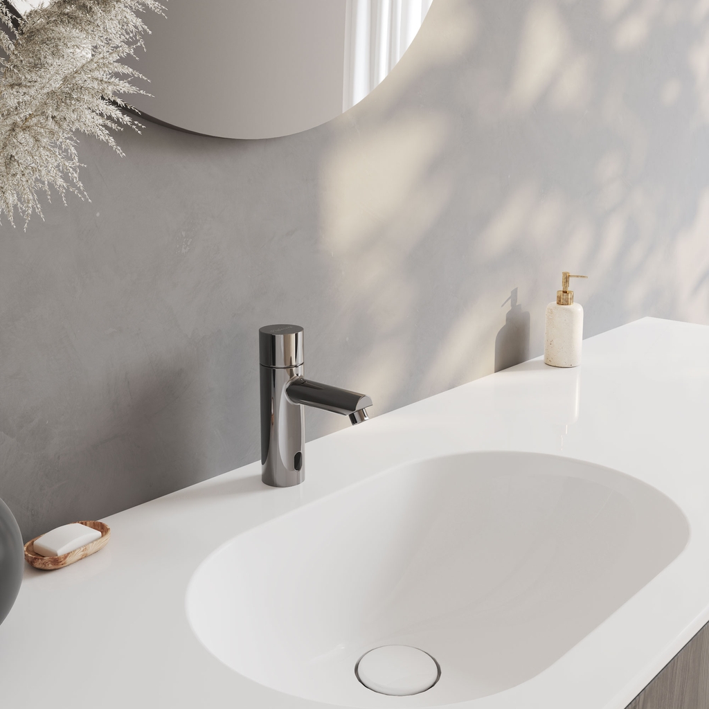 Vòi cảm ứng dùng pin Tự động tắt/xả nước, không cần chạm tay. |